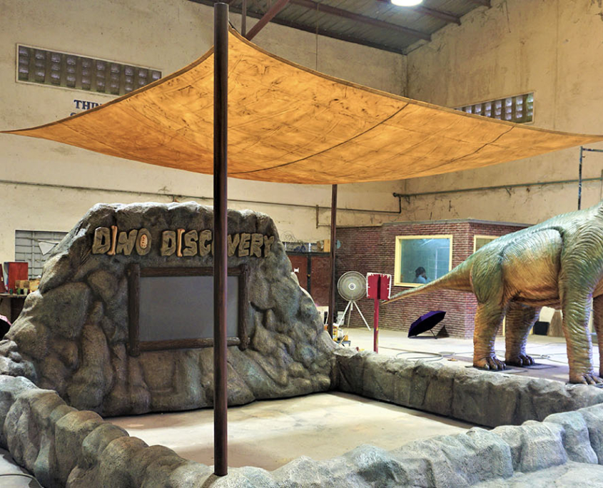 Op dit moment wordt er met man en macht gewerkt om een gloednieuwe Dino World te realiseren. ‘Het wordt een ware beleving vol spanning en sensatie’, vertelt Moespot enthousiast. Zodra je de poort van weleer betreedt, waan je je als bezoeker miljoenen jaren terug in de tijd en maak je een reis door de préhistorie. Onderweg ga je op ontdekkingstocht in de Dino Discovery, leer je alles wat er te weten valt over de dino’s en kun je als een echte archeoloog in een reusachtige zandbak botten uitgraven met speciale kwastjes. De Dino Express brengt je vervolgens langs een vulkaan, die tot uitbarsting komt. Een eindje verderop beschermt een raptor haar jonkies en doen haar oplichtende ogen vermoeden dat ze je elk moment kan aanvallen. Wordt dit toch allemaal een beetje te veel, dan maak je je met de mini-achtbaan Raptor Adventure razendsnel uit de voeten en kun je na dit spannende avontuur even rustig bijkomen in de theatershow met postbode Pelle en de babydino ’s.