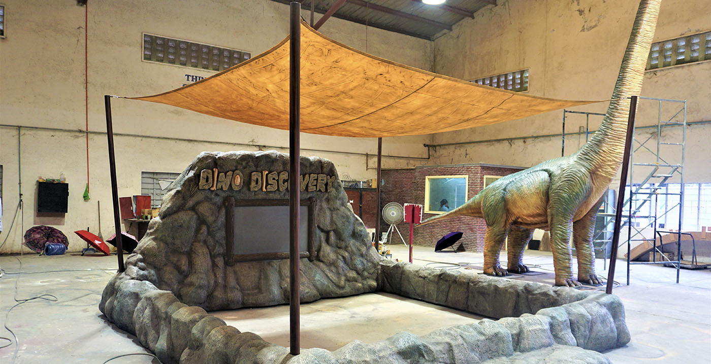 Op dit moment wordt er met man en macht gewerkt om een gloednieuwe Dino World te realiseren. ‘Het wordt een ware beleving vol spanning en sensatie’, vertelt Moespot enthousiast. Zodra je de poort van weleer betreedt, waan je je als bezoeker miljoenen jaren terug in de tijd en maak je een reis door de préhistorie. Onderweg ga je op ontdekkingstocht in de Dino Discovery, leer je alles wat er te weten valt over de dino’s en kun je als een echte archeoloog in een reusachtige zandbak botten uitgraven met speciale kwastjes. De Dino Express brengt je vervolgens langs een vulkaan, die tot uitbarsting komt. Een eindje verderop beschermt een raptor haar jonkies en doen haar oplichtende ogen vermoeden dat ze je elk moment kan aanvallen. Wordt dit toch allemaal een beetje te veel, dan maak je je met de mini-achtbaan Raptor Adventure razendsnel uit de voeten en kun je na dit spannende avontuur even rustig bijkomen in de theatershow met postbode Pelle en de babydino ’s.